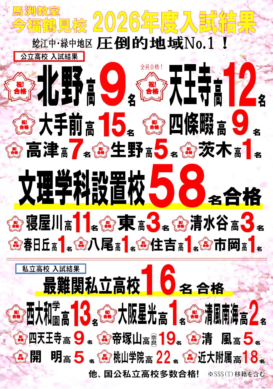 鯰江中・緑中 天王寺高校 合格者数 NO.1