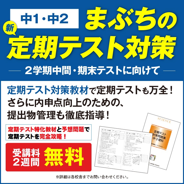 【無料】定期テスト対策オープン講座~馬渕の対策授業を体験~