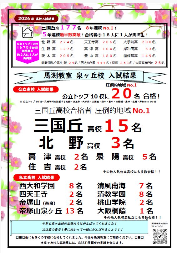 2026年 馬渕教室 泉ヶ丘校 高校入試 合格速報