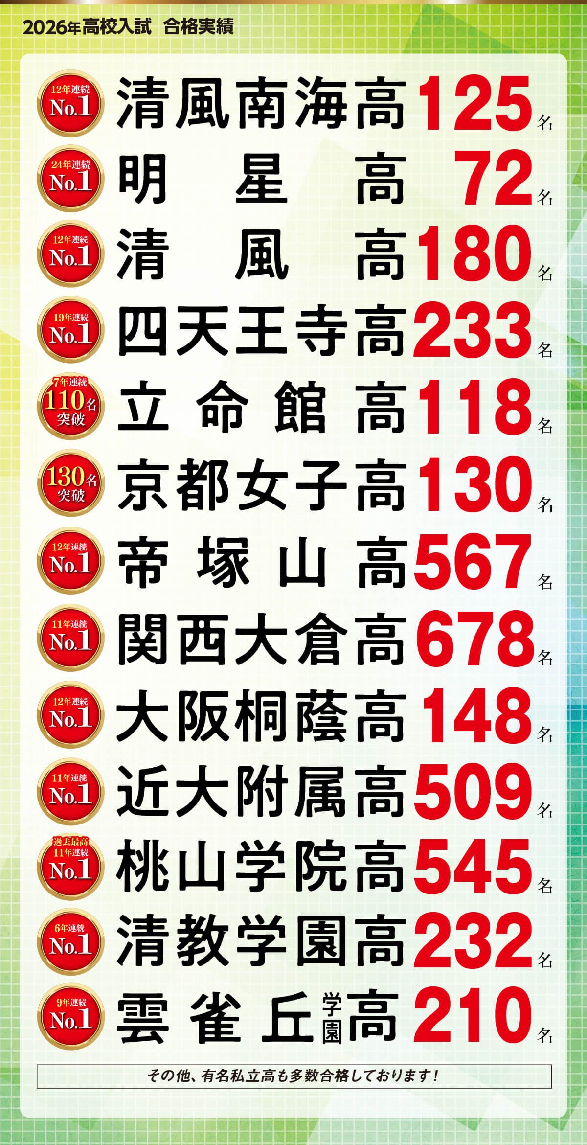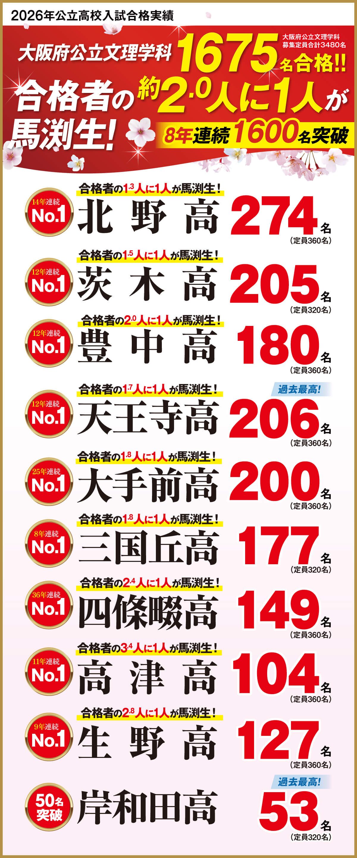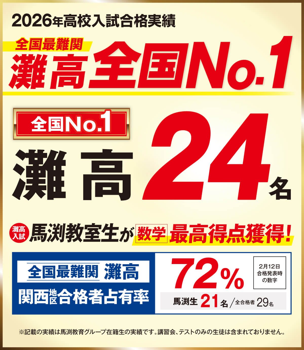 大阪府・奈良県・京都府・滋賀県・兵庫県公立最難関高合格者数No.1の馬渕だからできる、精緻・正確な判定。