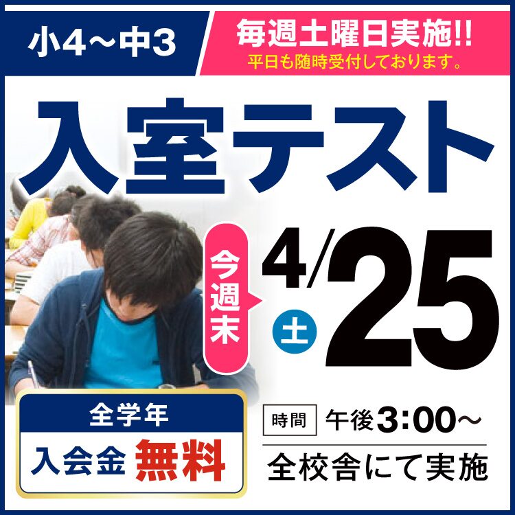 入室を希望される方は、「入室テスト」の受験が必要です。