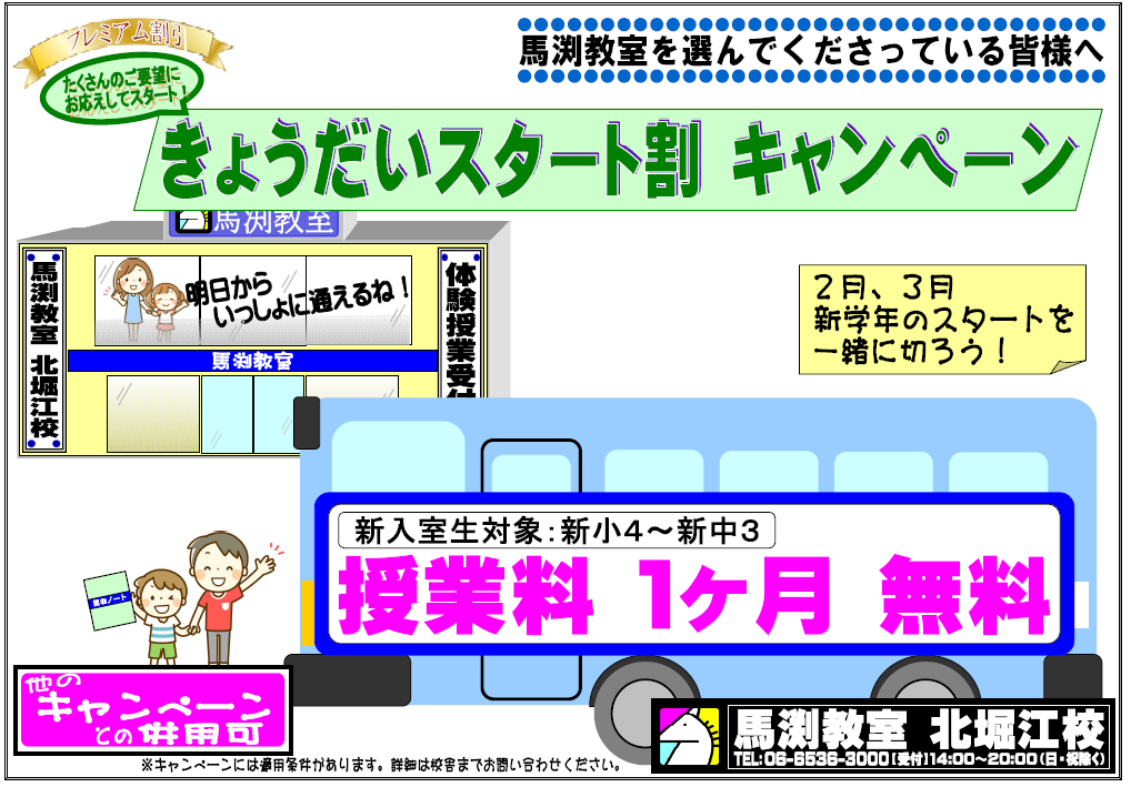 お申込み方法:北堀江校へ直接お電話いただくか,ホームページよりお申し込みください。