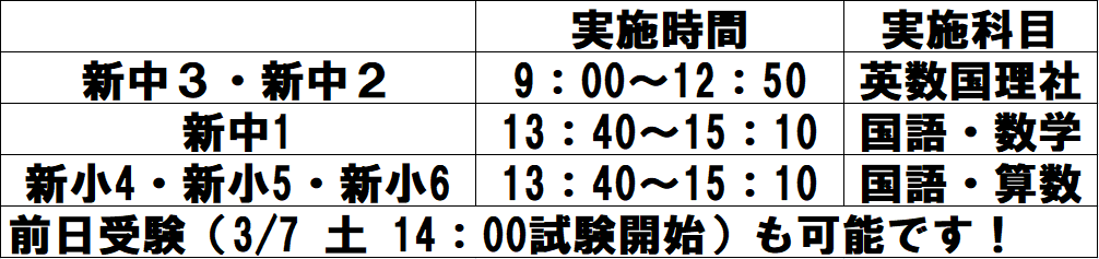 - 「モジュール体験授業」は入室説明会と同時実施です。