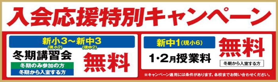 ⛄冬期講習生募集開始⛄ 今習得しておきたい重要単元を集中特訓 今年の冬期講習は全学年無料! 小4~小6の方は全4回の体験授業もあります! お申込みには、まずテストのご受験が必要です。 ❄入室テスト ❄公開テスト 新学年に向けての準備は馬渕教室にお任せください! |