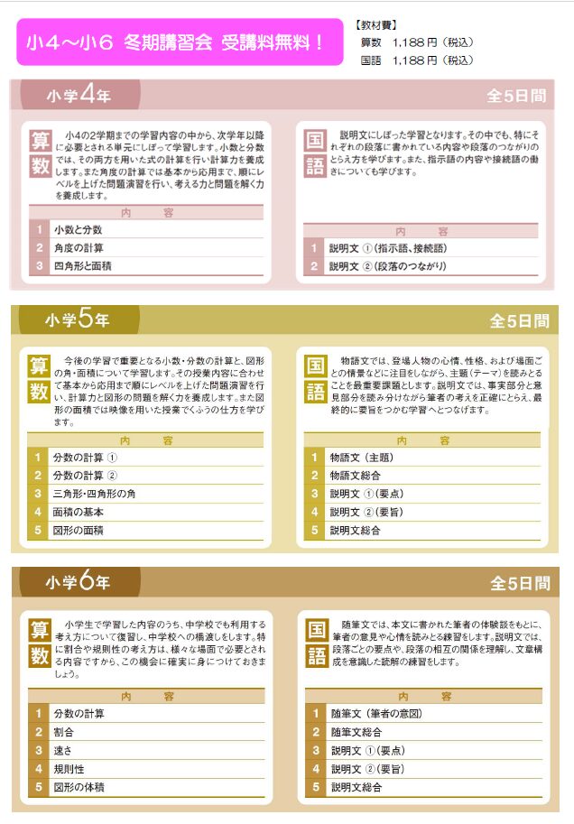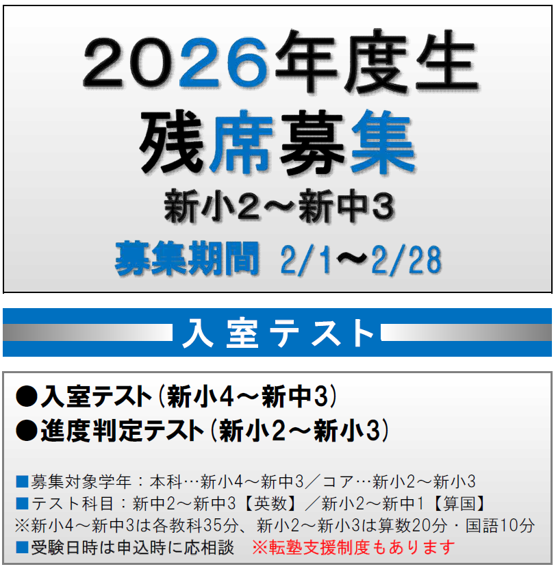 | 対象学年 | 小学2年生〜中学3年生 |