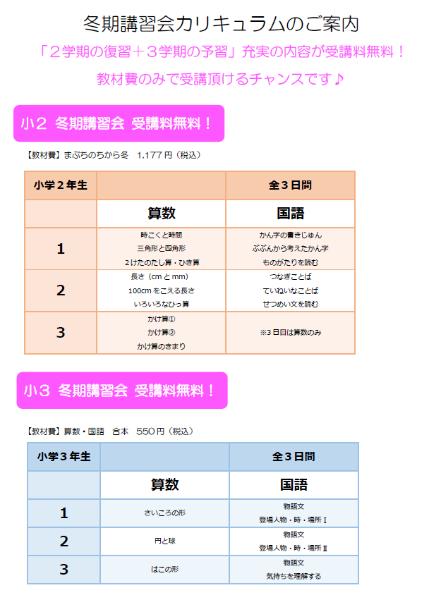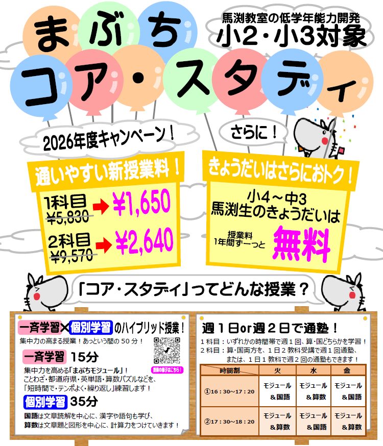 - 小2・小3算国能力開発・まぶちコア・スタディ