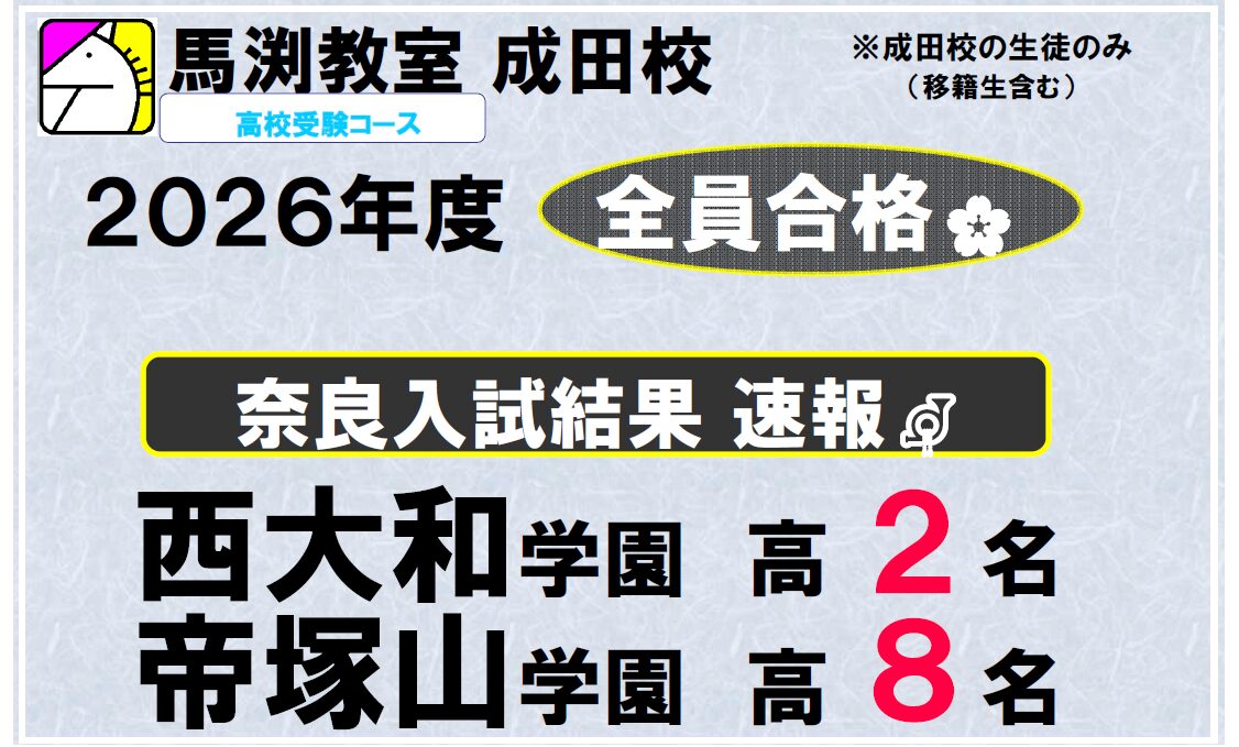 全受験者31名のうち、大阪府公立上位校(文理学科+寝屋川+東+牧野)に26名合格‼