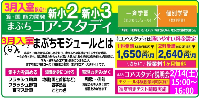 2月中に入室テストを受験して