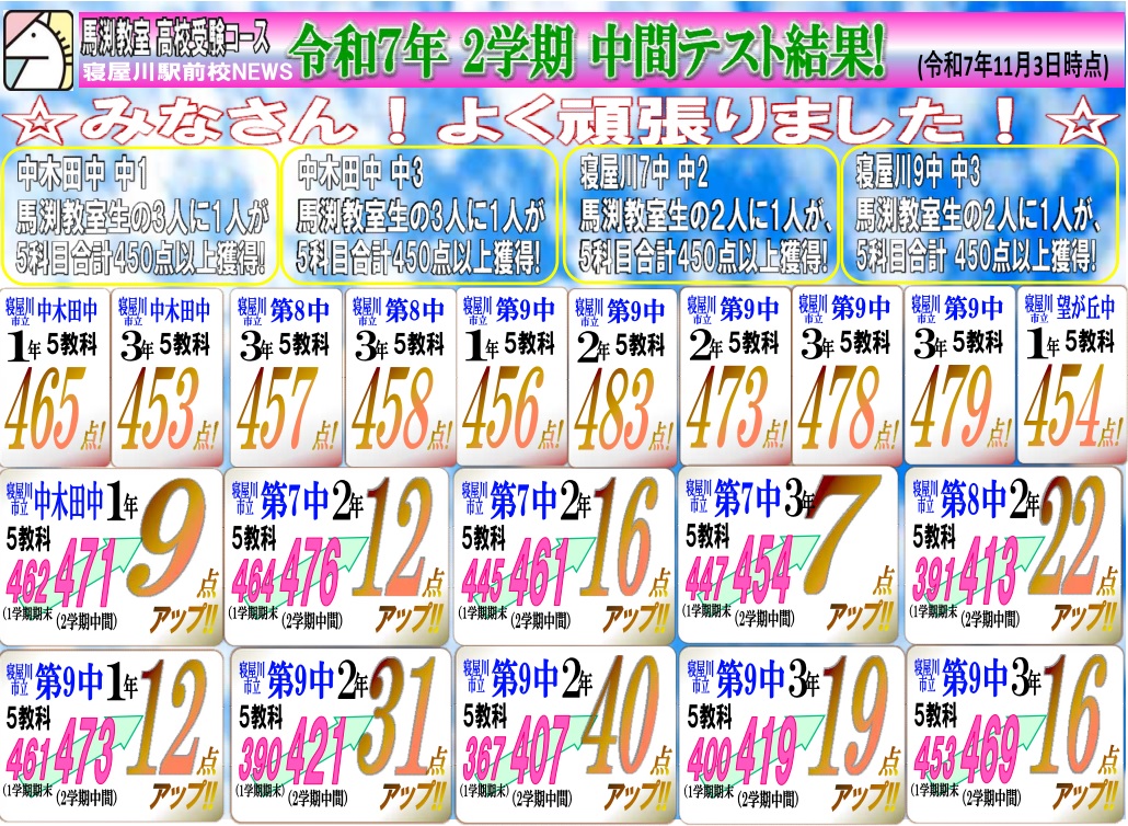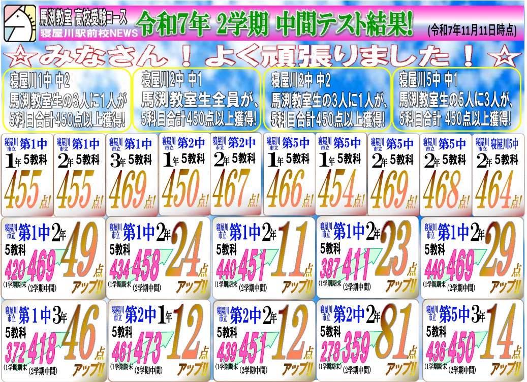 今年も寝屋川駅前校から大手前高校に全員合格など、