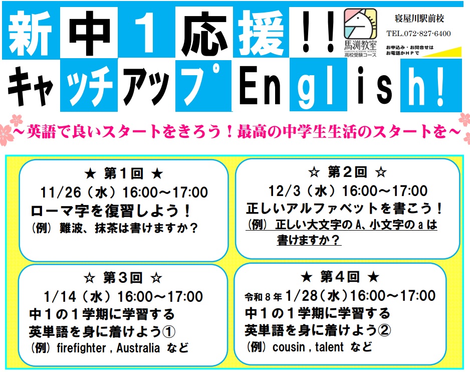 | お申込み方法 | 校舎へ直接お電話いただくか または ホームページよりお申込みください。 お申込みフォームはコチラ |