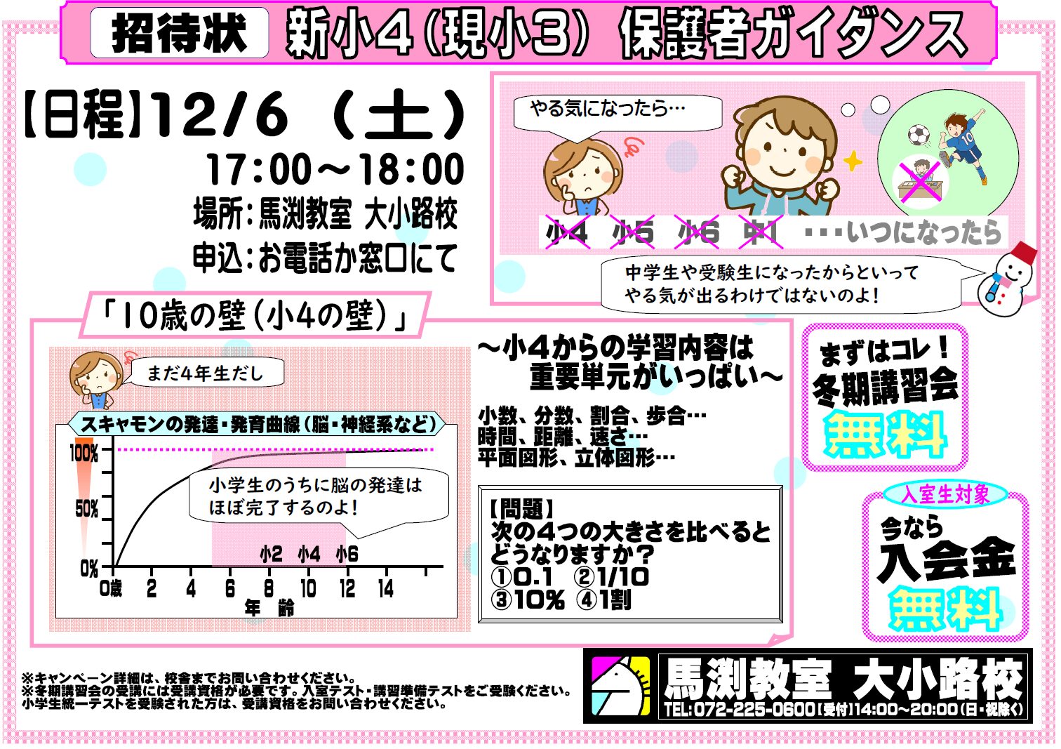※ご都合が合わない場合はご相談ください。馬渕教室大小路校(072-225-0600)