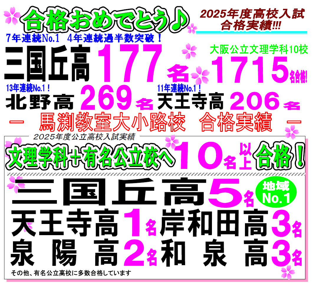申し込みはHPまたは校舎(大小路校072-225-0600)まで。