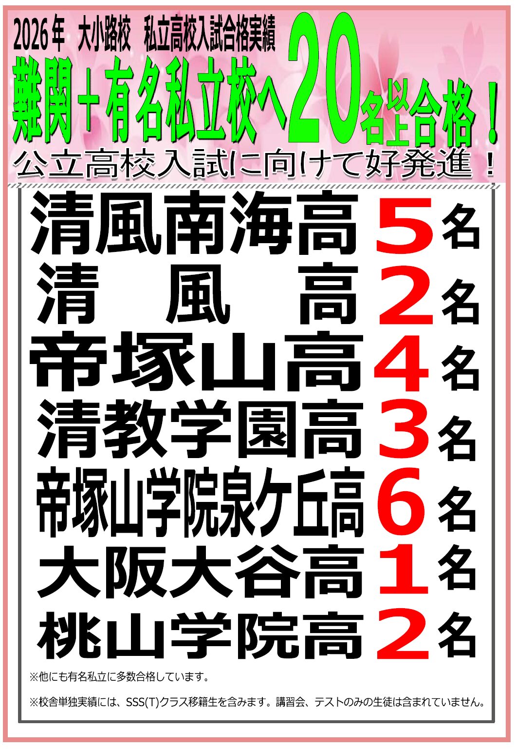 ☆2026年度 高校入試合格実績~大小路校~