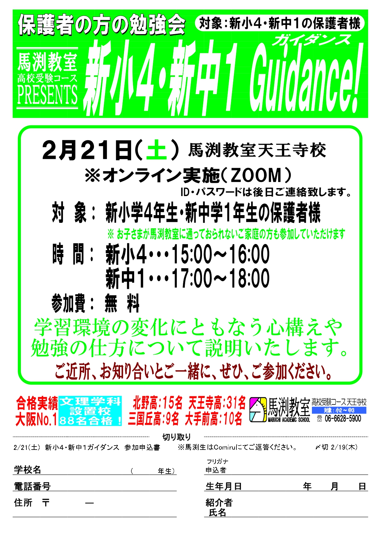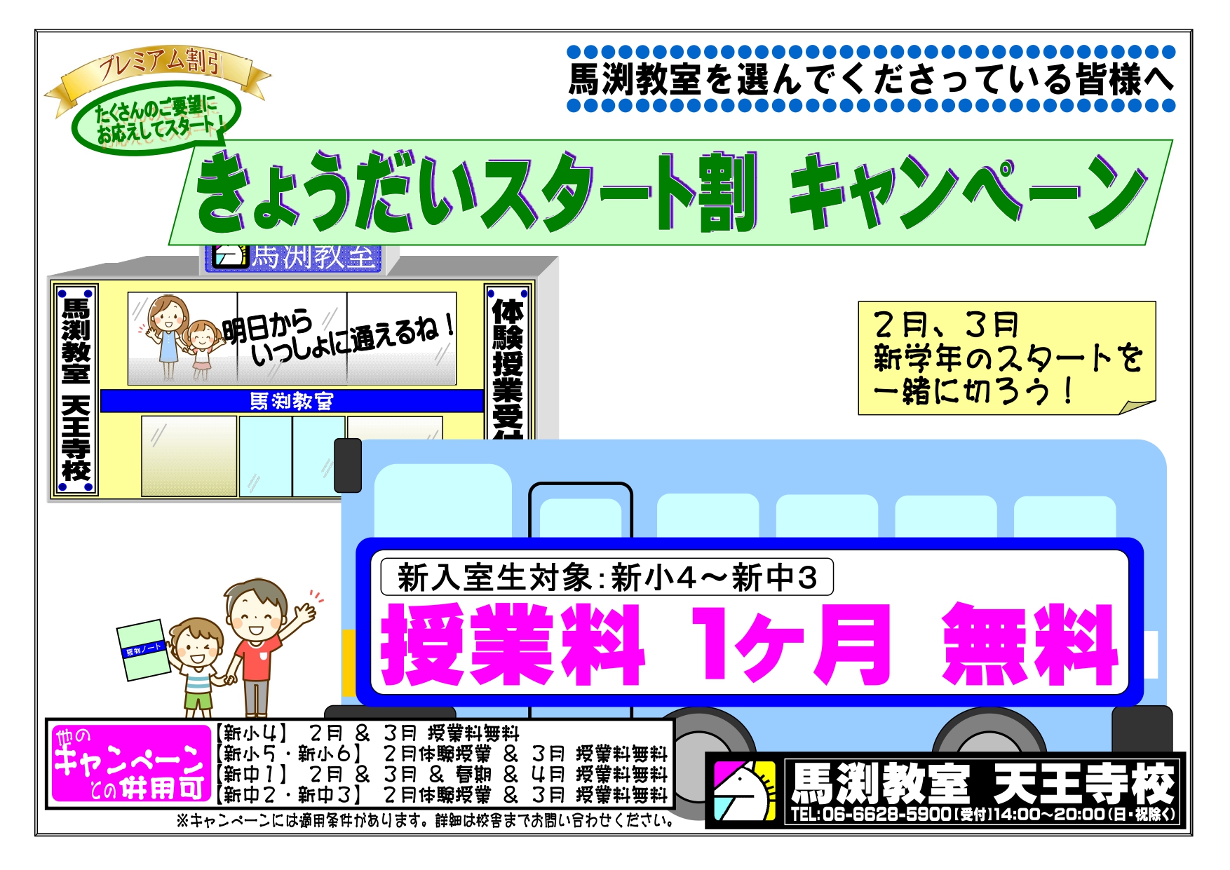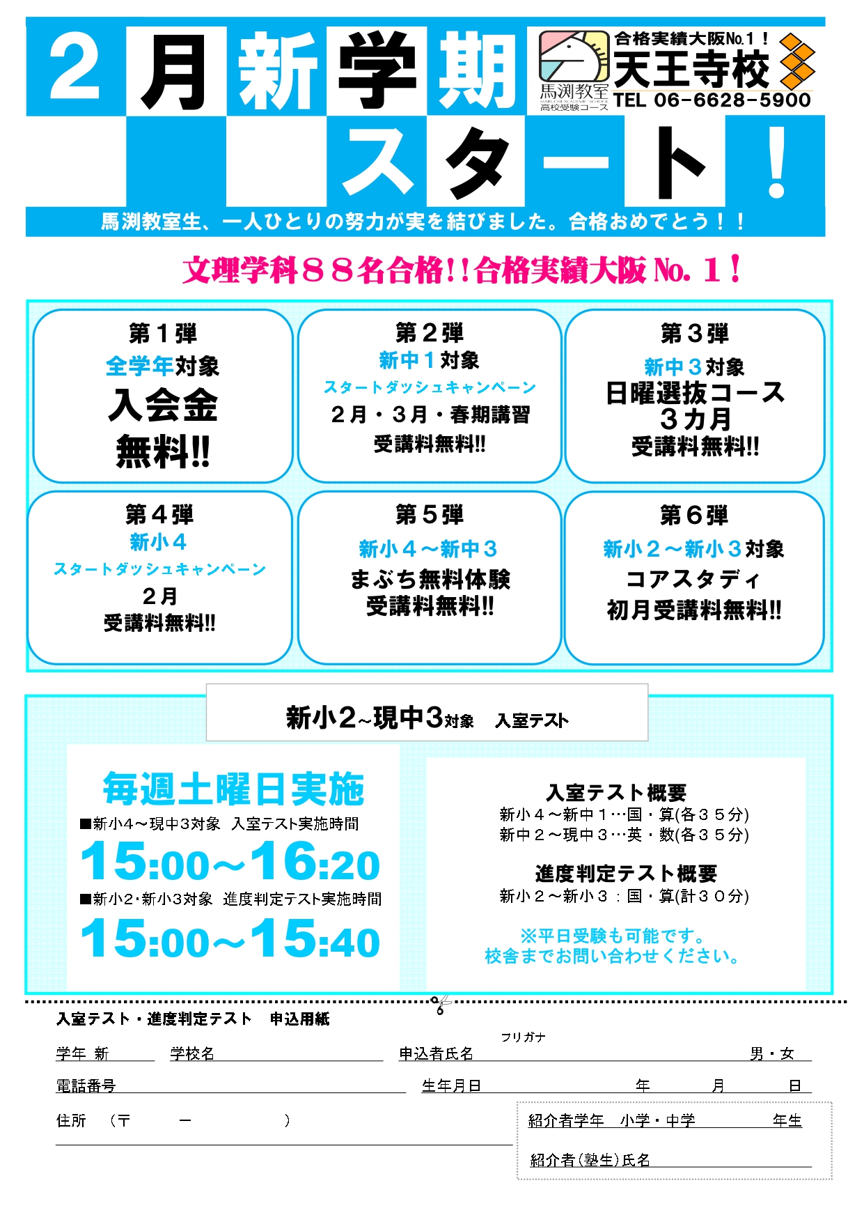 お申込み方法:天王寺校へ直接お電話いただくか,ホームページよりお申し込みください。