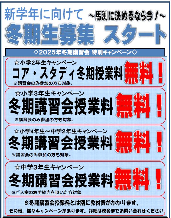 是非、2月から新しい仲間と一緒に馬渕教室で勉強しましょう!