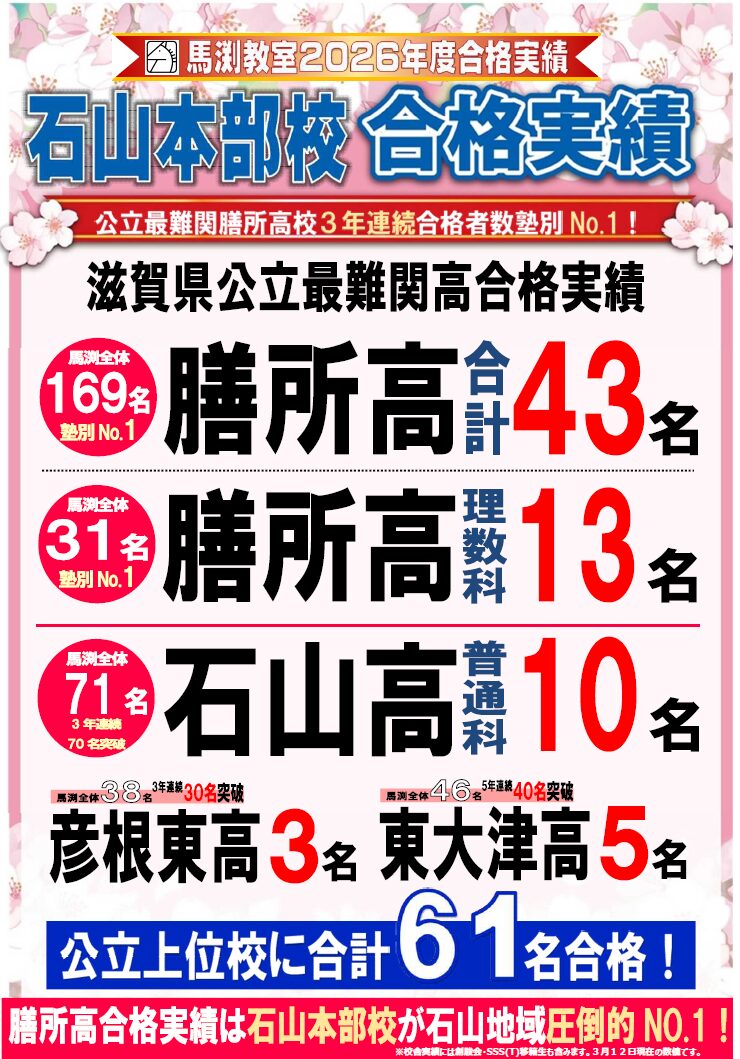 #受験 #高校入試 #公立 #私立 #合格 #実績 #最難関 #成績 #内申 #点数 #定期テスト #テスト対策 #講習 #春期講習 #夏期講習 #冬期講習 #ナンバー1 #膳所 #理数科 #守山 #石山 #彦根東 #東大津 #草津東 #転塾 #進学塾 #学習塾 #塾 #小2 #小3 #小4 #小5 #小6 #中1 #中2 #中3 #小学生 #中学生 #応援