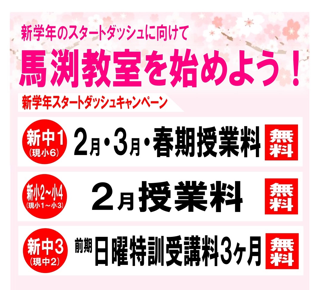 ・馬渕教室では定期テスト対策授業を無料で体験していただけます。詳しくは校舎にお問い合わせください。