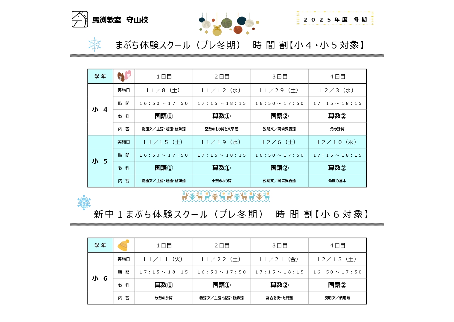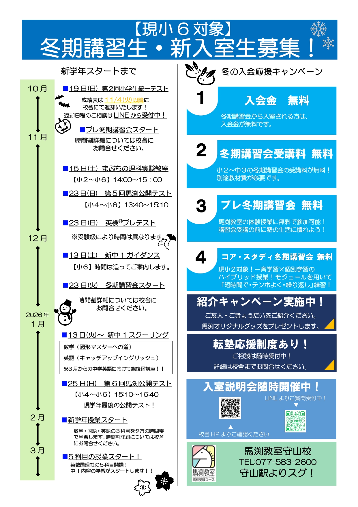 ぜひともお友達もお誘い合わせのうえ、馬渕教室の冬期講習会にご参加ください!