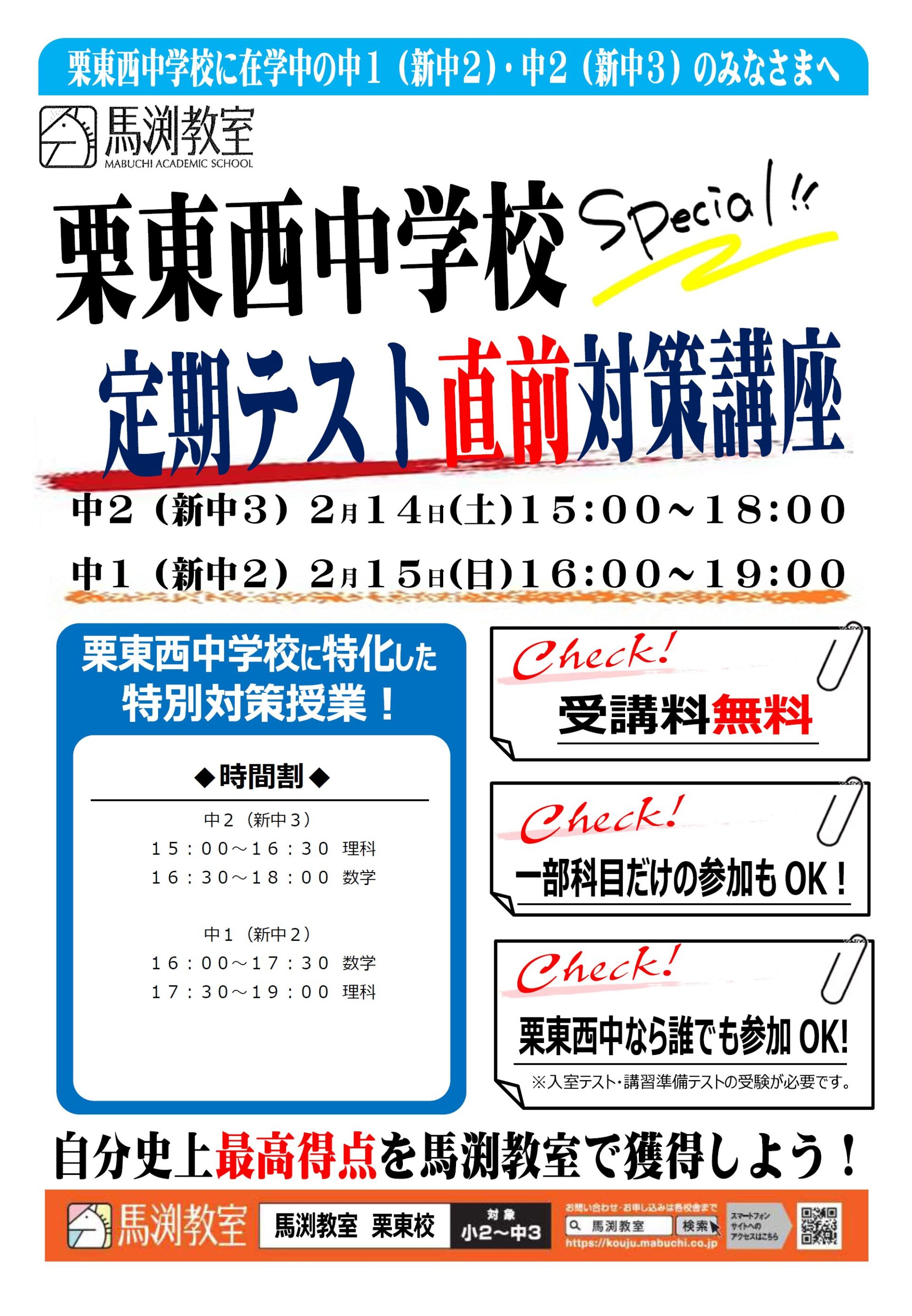 しかも、馬渕教室に在籍している生徒ならすべて無料で受講できます!