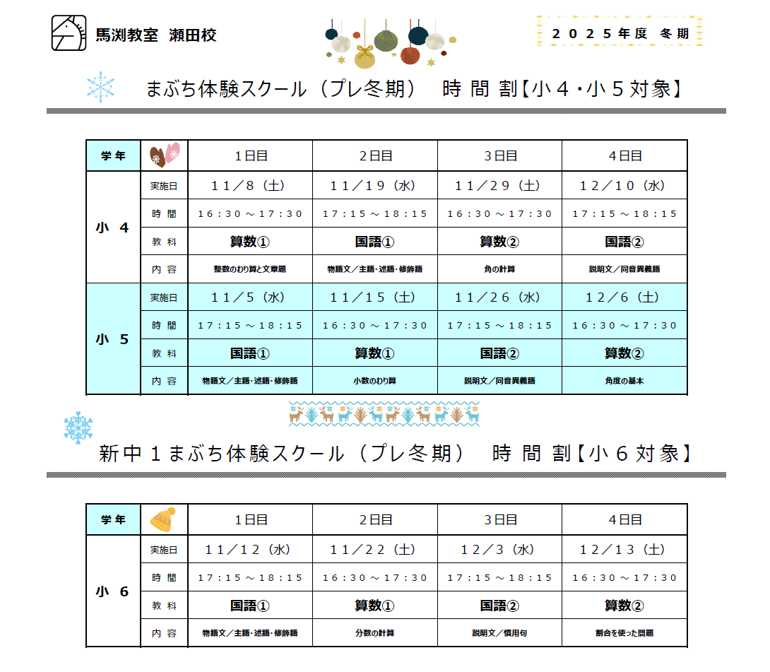 ぜひともお友達もお誘い合わせのうえ、馬渕教室の冬期講習会にご参加ください!